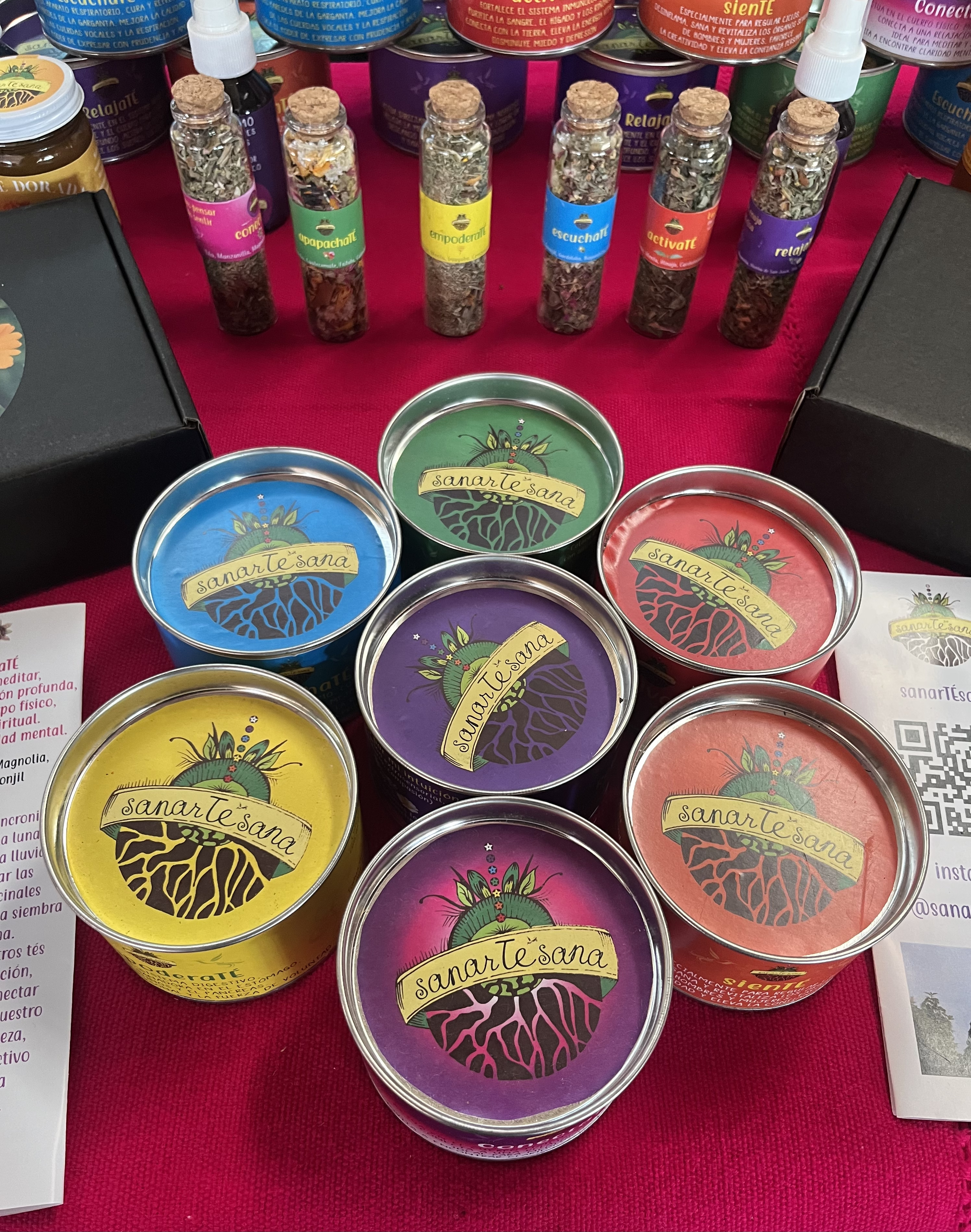 During our initial conversation, Yoali explained that the bright colors that first grabbed my attention weren’t just for the sake of packaging—they were directly related to the seven chakras, or energy centers that impact our mental and physical well-being. Through her project SanarTÉsana, Yoali offers 100% organic medicinal teas inspired by each chakra and made with plants from her garden in Tlayacapan, Morelos, as well as various farms in other regions of Mexico.